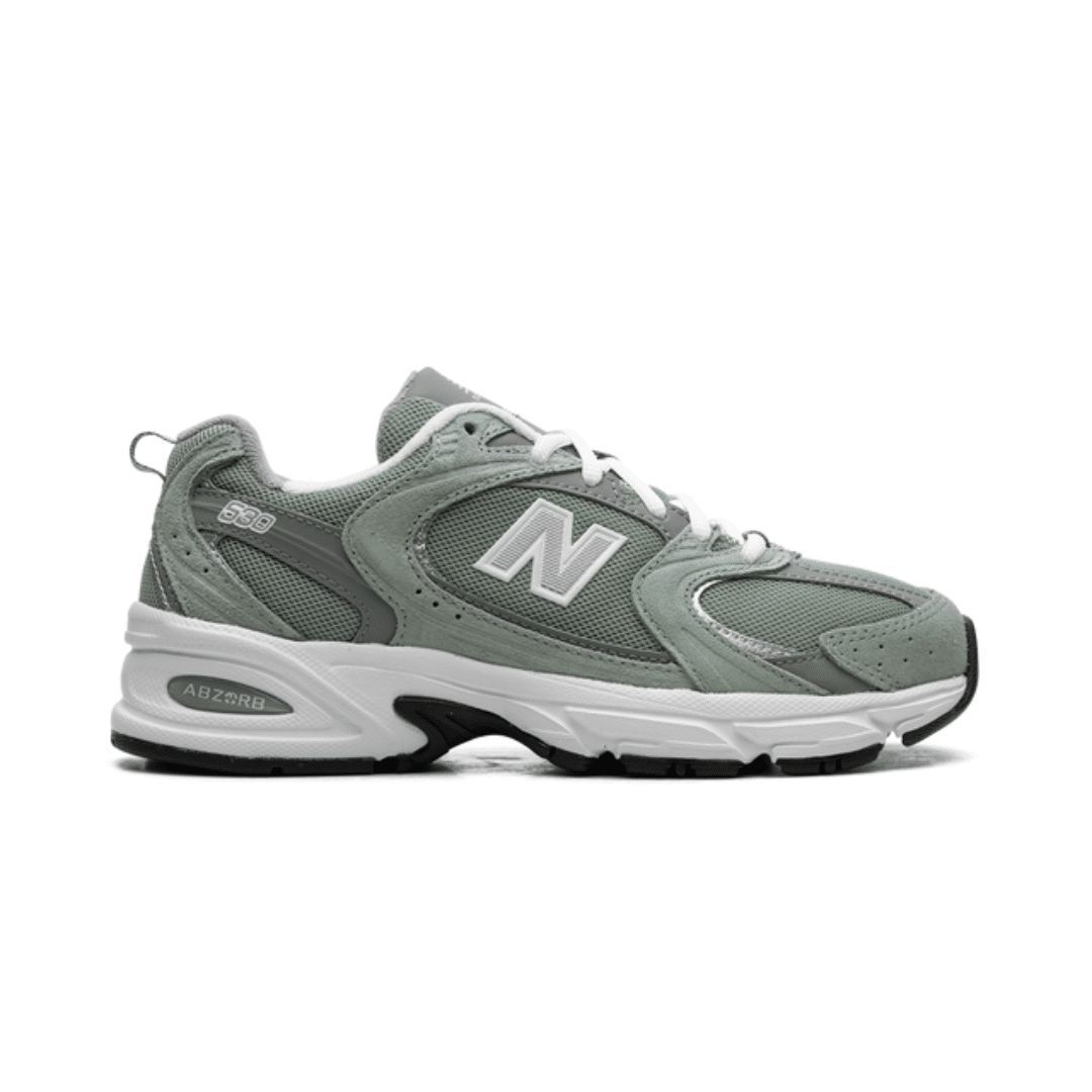The New Balance 530 «Juniper Shadow Grey» combines a modern look with the retro touch characteristic of the 530 line. Its upper mixes breathable mesh with suede and synthetic leather overlays, providing a comfortable fit and durability. The midsole equipped with ABZORB technology efficiently absorbs impacts, ensuring prolonged comfort. The Shadow Grey tone gives a sophisticated and versatile look, perfect for those looking for a stylish sneaker for everyday life.