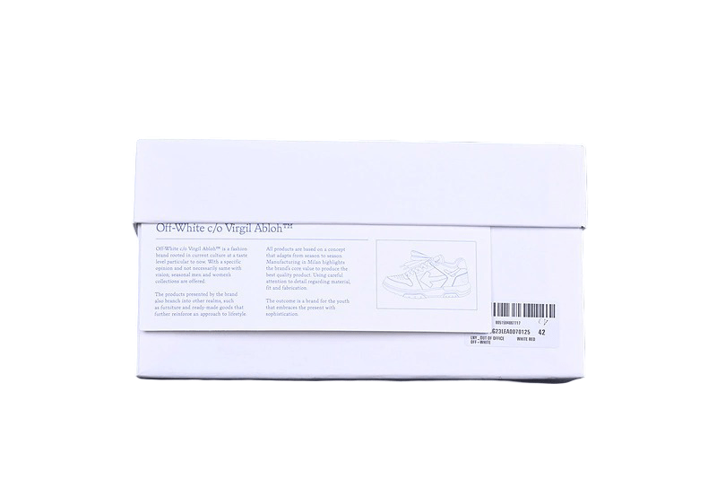 Off-White Out of Office Low ‘White Red’ de la colección Off-White diseñada por Virgil Abloh. Confeccionadas en cuero premium con los detalles signature de la marca: comillas, flecha diagonal y zip-tie.